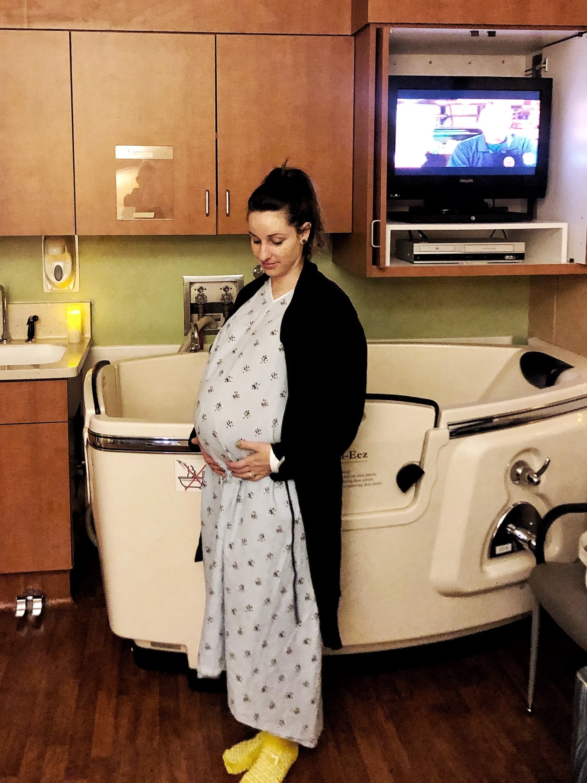 After my son went to my sisters, my husband and I prepared all our things. Of course, he was slightly freaked out and wanted to be on the road to the hospital 10 minutes ago. I knew Dahlia wouldn’t be making her entrance anytime soon, however. I had no contractions yet, just the annoying on going leak . So I cleaned the house, because I refused to come back two days later to a dirty house, and I took a shower. Finally we were off to the hospital, 45 minutes away. When we made it, I went to triage to check if I was in fact, in labor, and if it was in fact, my water. We got confirmation that it was, and my contractions were about 9 minutes apart. Since I was planning to have a natural birth, we were offered two options- to go home and labor more at home, or get admitted since my water was broken, even though my contractions weren’t very close. We opted to get admitted since we were so far from home. My biggest fear being far from the hospital, was getting stuck in traffic while in full blown labor, and birthing baby in the car. The hospital had one room with a birthing tub, saved for mothers choosing to have a natural birth. The room is first come first serve, and the maternity ward was busy that night, but low and behold, the room was available. It was like it was all meant to be. Off we went to our room.